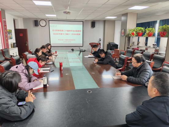 为深入贯彻落实党中央及自治区党委最新决策部署,深刻领会新时代新征程的使命任务,持续强化理论武装,近日,学院党委组织召开全体党员政治理论学习会,专题学习党的二十届四中全会精神和宁夏回族自治区第十三届委员会第十一次全体会议精神,聚焦“高质量充分就业”等重要议题进行深入研讨。学习会由学院党委副书记冯燚主持,郝诗羽、何帧两名支部委员作领学发言。