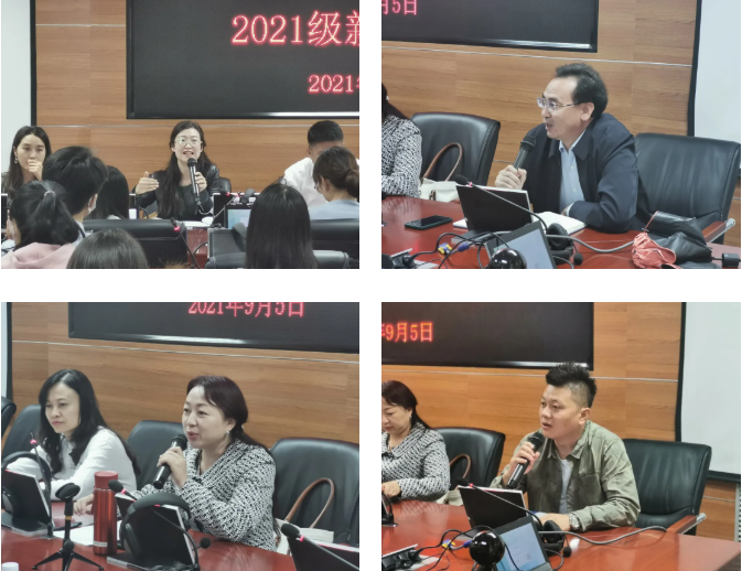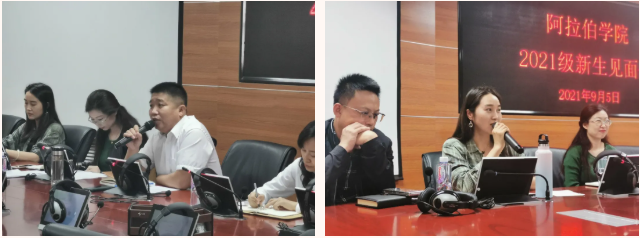 白楠副院长从学院历史沿革、人才培养模式、教学管理等方面进行了介绍,重点对新生的专业学习中应注意事项进行了强调;金忠杰副院长就出国访学、研究生教育管理情况进行了介绍;冯璐璐副院长介绍了中国阿拉伯国家研究院的发展历程、学科建设与高端智库建设情况;学办主任金宁洋讲解了学院学生管理工作相关制度;研究生辅导员、2021级班主任马洋洋老师与新生进行了交流,并分享了大学生活经验,引导同学们尽快融入大学生活;赵永军副书记结合疫情防控纪律、入学教育安排、一日作息管理制度等方面,希望各位新生提高安全防范意识,做好学业规划,扣好大学第一粒扣子。