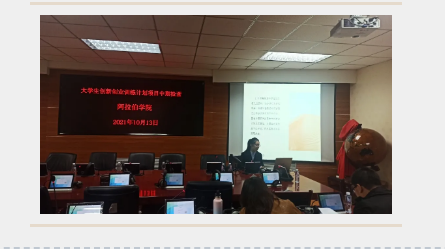 在文萃校区知行楼八楼报告厅开展“大学生创新创业训练计划项目中期检查”汇报会,本期检查由赵佳舒老师主持,华人影院
