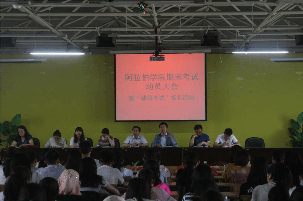 外国语学院403教室召开期末考试动员大会。会议由王彦仓副书记主持,金忠杰常务副院长、姜克银副院长、白楠副院长,学办主任马生忠,教研室主任周丽娅,副主任王艳、学生辅导员金宁洋老师及华人影院