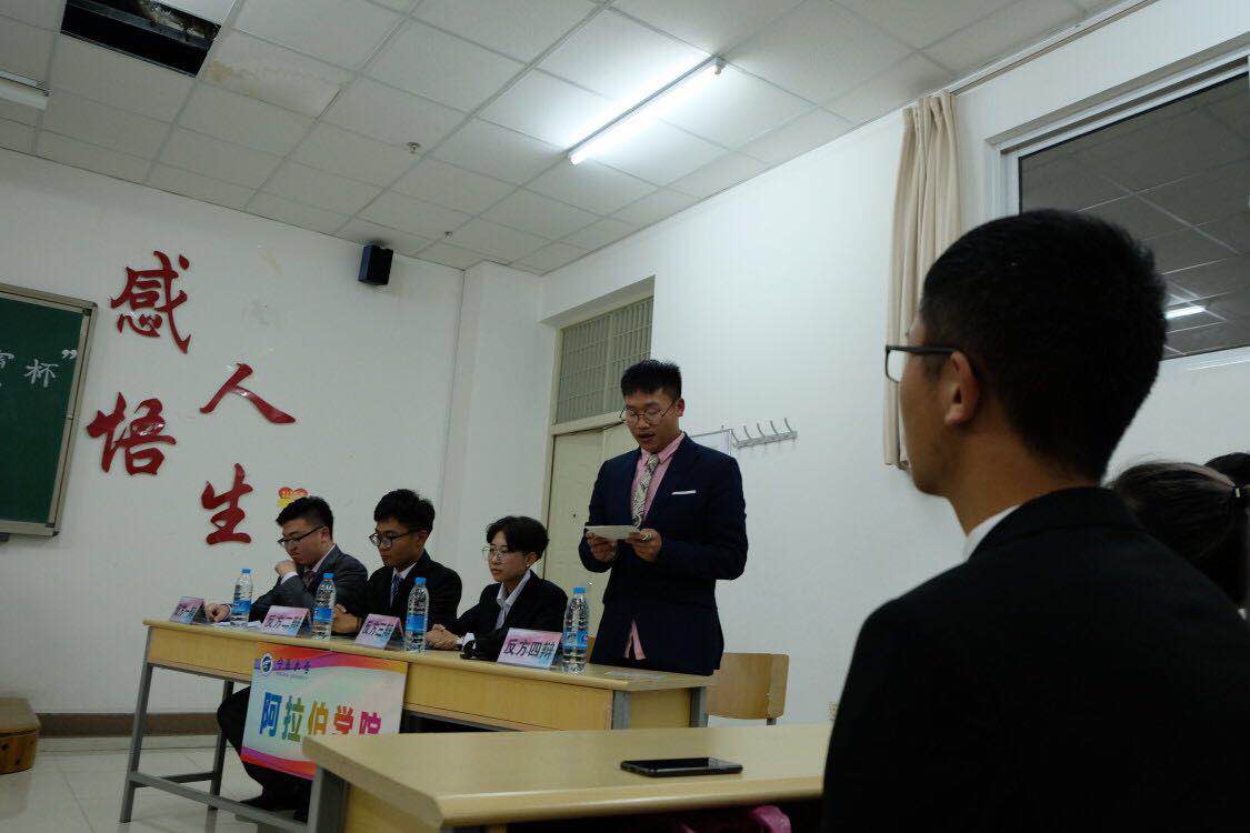 燕宝杯“思辨青春,感悟人生”辩论赛。研究生学院副院长周学忠、人文学院教授白建灵、新华学院副教授朱晓莉担任评委。