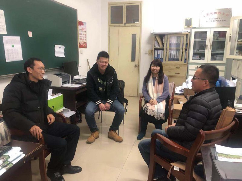 在浙江越秀外国语学院阿拉伯语系的调研过程中,随行人员与系主任马晓明就目前阿拉伯语专业就业形势进行分析和探讨。