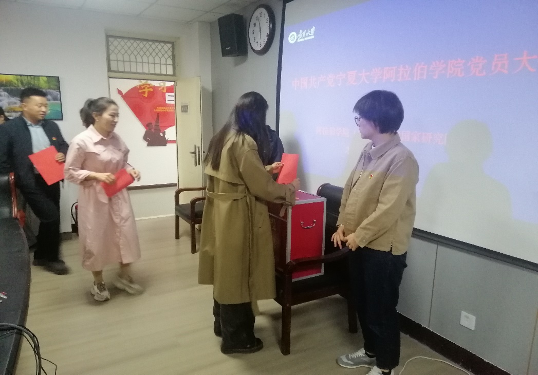 大会在雄壮的国歌声中拉开帷幕。首先党总支书记对候选人产生的过程作了说明。随后,大会严格按照选举程序,通过了候选人名单、选举办法、监票人和计票人名单,采取无记名投票、差额选举的方式,补选产生了周丽娅、刘东宁两位同志为华人影院