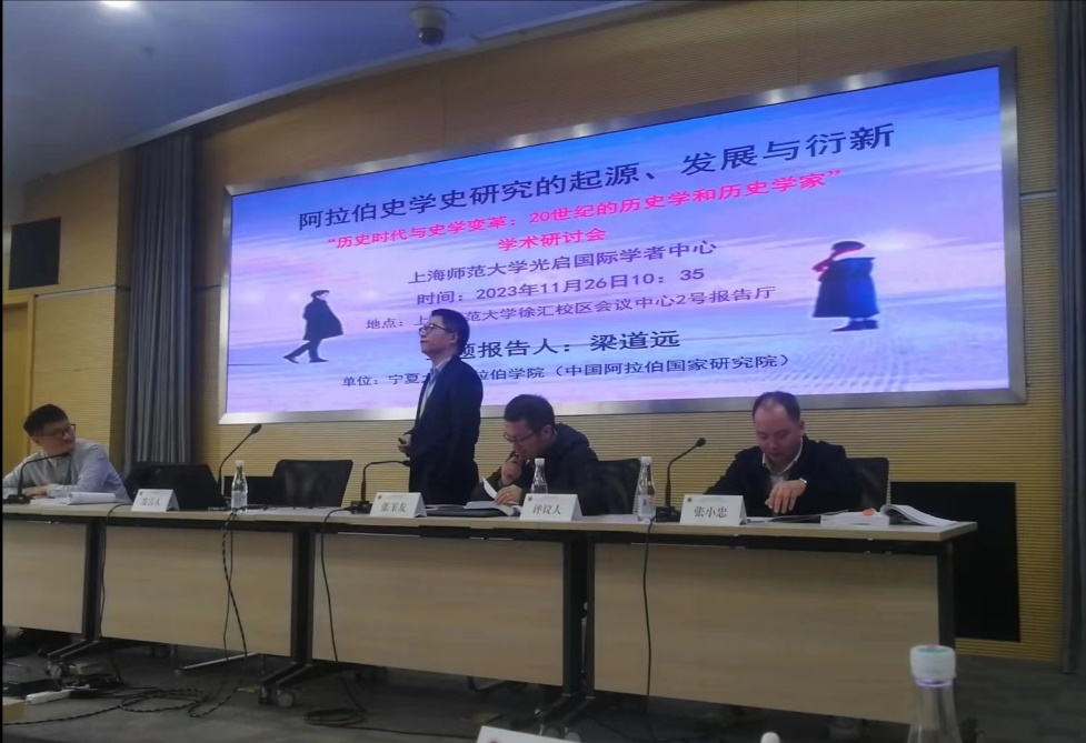 26日上午,梁道远做了题为《阿拉伯史学史研究的起源、发展与衍新》的大会主题报告,系统地回顾了世界范围内的阿拉伯史学史研究的发展历程,提倡“21世纪20年代应当成为中国人建设阿拉伯史学史学科乃至中东史学史学科群的年代”。
