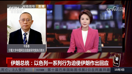 华人影院 学术副校长、中国阿拉伯国家研究院执行院长,中国中东学会副会长、中国人民外交学会理事牛新春教授接受了中央电视台、新华网、凤凰卫视等主流媒体的采访,就伊以、黎以冲突及趋势进行了分析和解读。