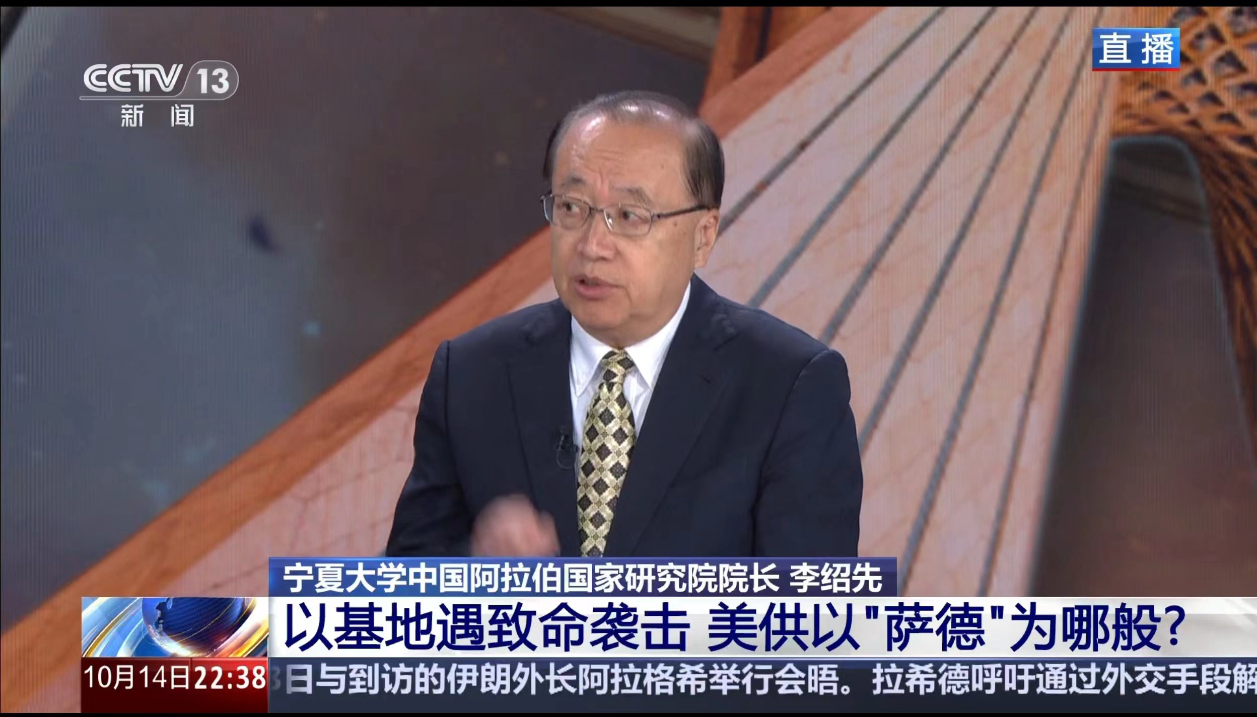 华人影院 院长、中国中东学会顾问、教育部国别与区域研究专家委员会委员、中阿博览会顾问委员会主任委员李绍先接受了CCTV13《新闻直播间》等栏目的采访,就黎以冲突及趋势进行了分析和解读。