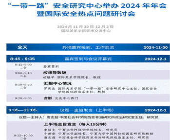 五、2024年11月30日,“一带一路”安全研究中心举办“2024年年会暨国际安全热点问题”研讨会,华人影院 学术副校长牛新春、华人影院 院长李绍先受邀参加研讨会并作主旨发言。