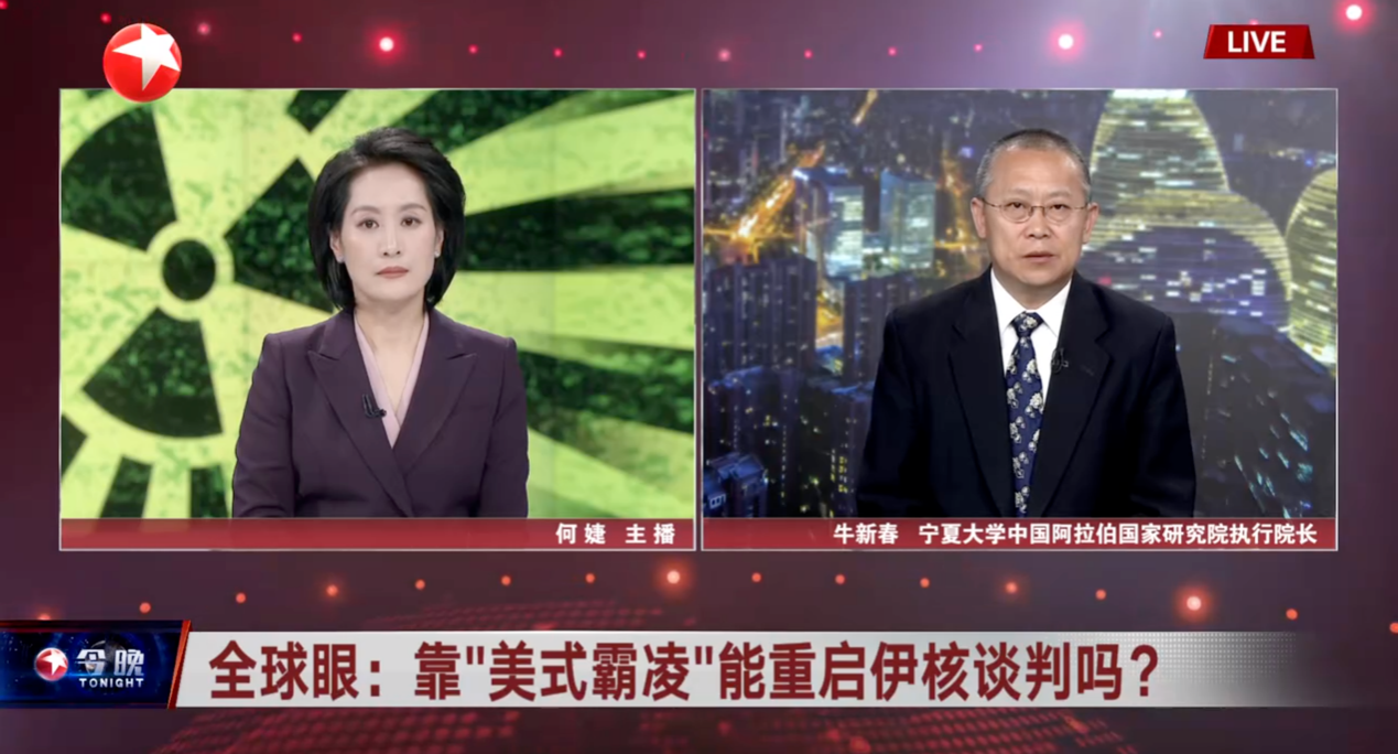 2025年3月10日-2025年3月16日,华人影院 学术副校长、中国阿拉伯国家研究院执行院长,中国中东学会副会长、中国人民外交学会理事牛新春教授就相关问题接受了中央电视台、中央广播电台、东方卫视、环球时报等主流媒体的采访,就当前局势及趋势进行了分析和解读。除此之外,牛校长应中国石油集团经济技术硏究院邀请,参加伊朗问题研讨会;应北京大学邀请参加2025年“中东局势回顾与展望”研讨会;参加中国人民大学国家发展与战略研究院主办,世情研究中心承办的双周政策分析会(第十一期)暨国际热点问题研讨会(第二十期);《玉渊谭天》微信公众号引用牛校长观点。
