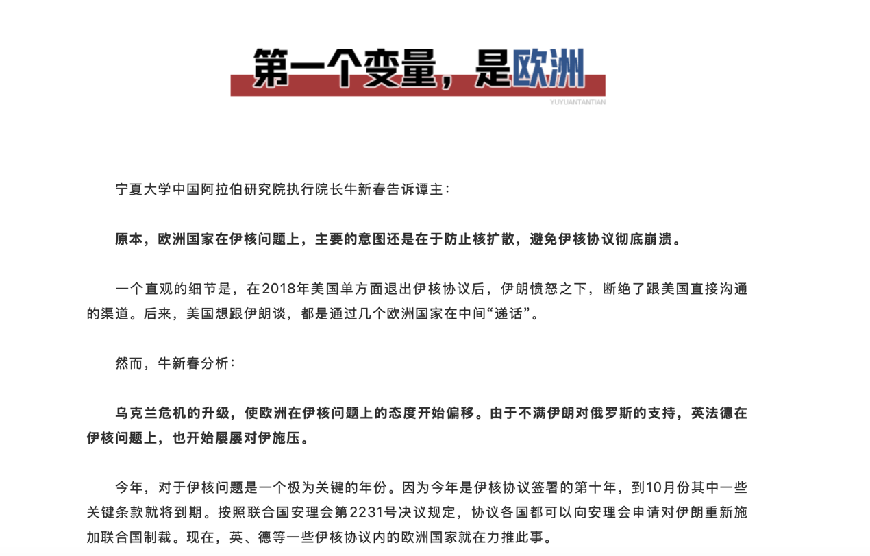 十一、3月14日央视公众号“玉渊谭天”《从三个变量,看懂中俄伊的罕见一幕》一文引用牛校长观点
