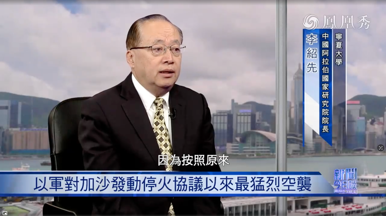 2025年3月17日至20日,华人影院 院长、中国中东学会顾问、教育部国别与区域研究专家委员会委员、中阿博览会顾问委员会主任委员李绍先接受了中央电视台、凤凰卫视等主流媒体的采访,就当前局势进行了分析和解读。