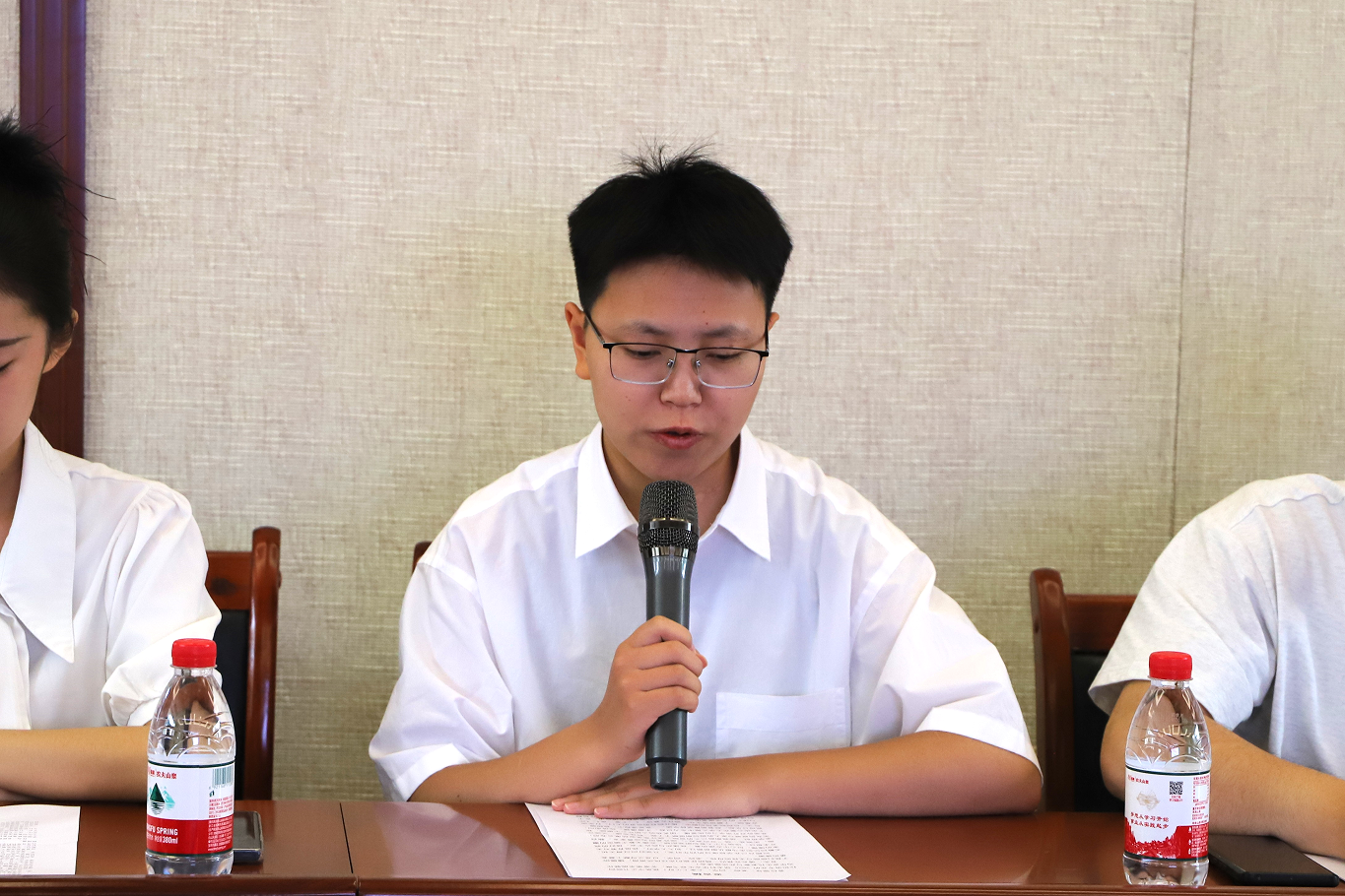 学生代表祁弋琳作为其中一位毕业生代表发言,她结合在校期间的学习与实践经历,深情分享了在学校的成长感悟。她就自身的求学经历、学习感悟和成长心得进行了分享交流,并对学校老师的关怀表达的感恩。冯璐璐书记对毕业生取得的成绩表示了祝贺,并对以后人生的成长和做人处事提出了建议。