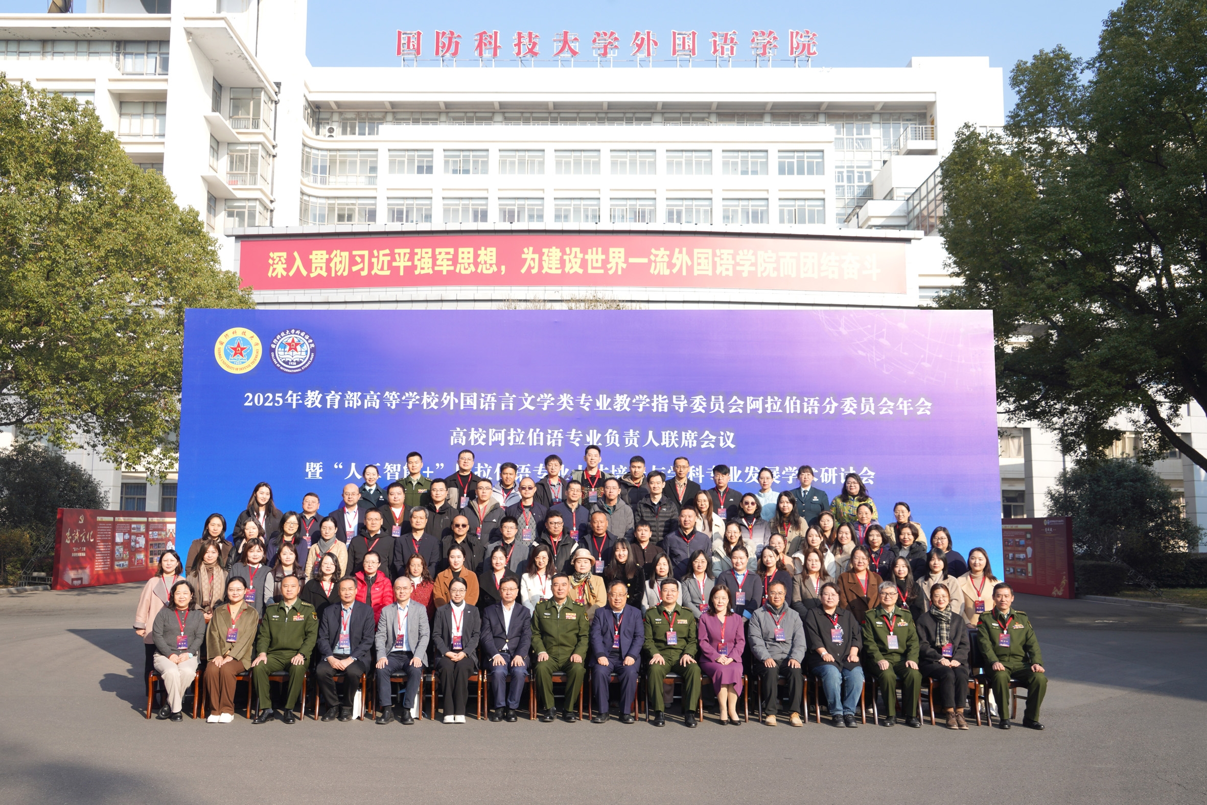 2025年12月6日,2025年教育部高等学校外国语言文学类专业教学指导委员会阿拉伯语专业教学指导分委员会年会暨高校阿拉伯语专业负责人联席会议在南京顺利召开。会议由教育部外指委阿语分指委主办、国防科技大学外国语学院承办。阿语专业分指委委员,以及30余所高校阿语专业负责人参加会议。国防科技大学外国语学院王鑫院长,教育部高等学校外国语言文学类专业教学指导委员会副主任委员、阿拉伯语分委会主任委员、北京语言大学罗林教授出席开幕式并致辞。