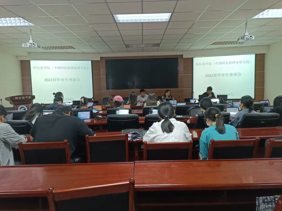 座谈会上,各位毕业生代表分别进行了交流发言,表达了对学校、学院的感激与依依不舍之情,分享了大学期间的学习、生活的收获与体会,并结合在校学习经历,对学院的课程设置、专业建设和教学实习、“阿语+”辅修二学位、学生管理等方面工作提出了意见建议。与会领导与毕业生代表们进行了交流,表达了对毕业生的祝福,并表示学院将本着对学生高度负责的态度,持续做好精准帮扶工作。在今后的工作中逐步落实毕业生代表们提出的诚恳意见与建议,努力为学弟学妹们创造更好的条件。