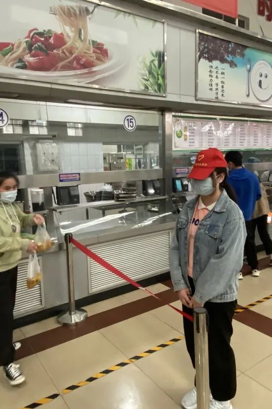 本次活动内容为劝导同学们在食堂正确佩戴口罩、遵守餐厅入座和出入规则。按照活动要求,志愿者到达选定的服务区进行志愿活动。大部分就餐同学都能严格按照学校的规章制度佩戴口罩、同向就坐和出入餐厅。在志愿者的提醒努力下,同学们均能遵守相关规定,配合学校疫情防控措施。在活动结束之际,餐厅的工作人员纷纷对志愿者们表示了感谢,这让志愿者们感受到志愿活动的意义和幸福感。