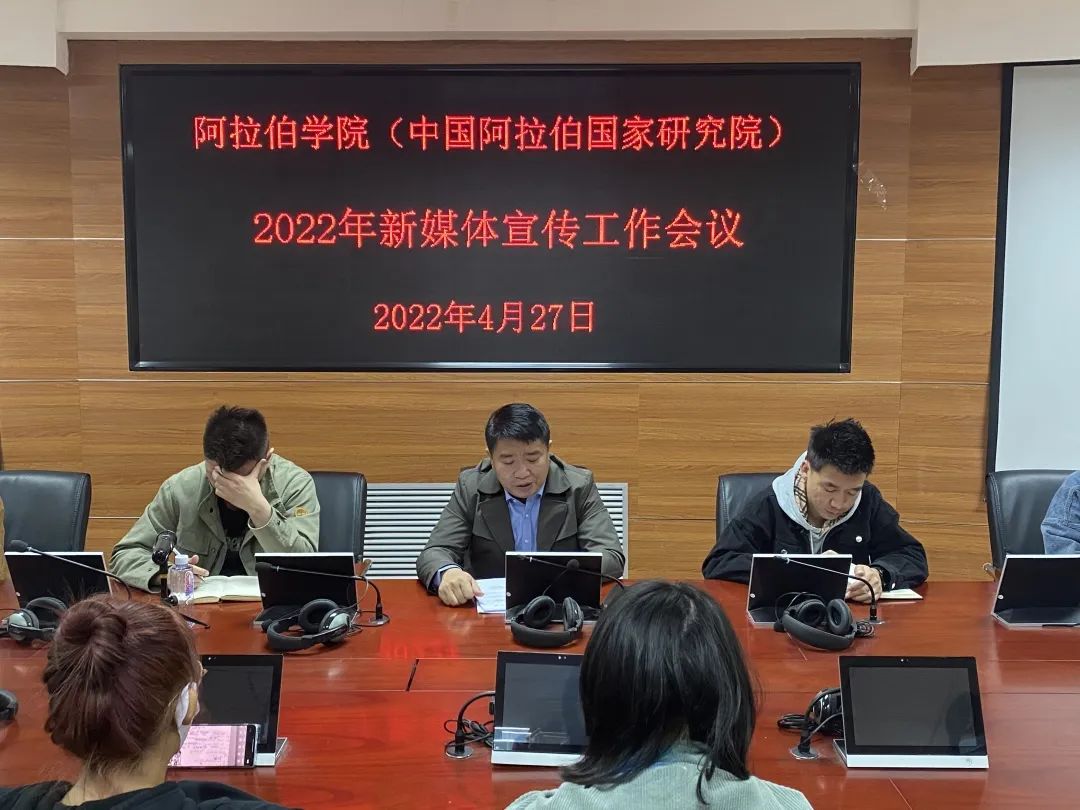 (中国阿拉伯国家研究院)在文萃校区知行楼8楼学术报告厅召开“2022年新媒体宣传工作会议”。学院党总支副书记赵永军、学办主任金宁洋、学院办公室郭凯原老师、华人影院