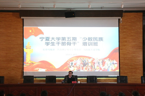 10月26日下午,我校第五期“少数民族学生干部骨干”培训班第二期专题讲座在怀远校区英才报告厅举行,华人影院 常务副院长金忠杰教授为学员作“‘一带一路’倡议与丝路宁夏战略支点”专题讲座,第五期“少骨班”全体学员聆听了讲座。